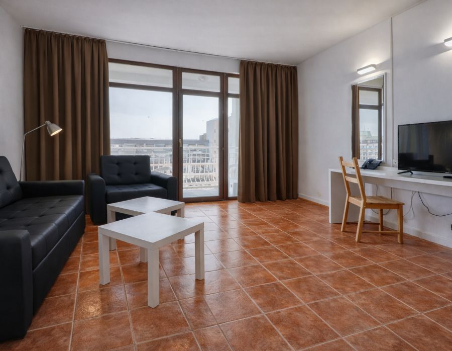 Apartamentele noastre cu un dormitor sunt compuse dintr-un dormitor cu pat dublu, living cu chicinetă, canapea extensibilă, fotoliu extensibil, baie proprie și balcon mobilat, cu vedere la parc sau vedere parțială la mare. Apartamentul este dotat cu aer condiționat centralizat, seif, mini-frigider, internet, televizor cu canale prin satelit, telefon, duș și/sau cadă, uscător de păr și articole de toaletă. Toate camerele noastre au pardoseală din gresie.